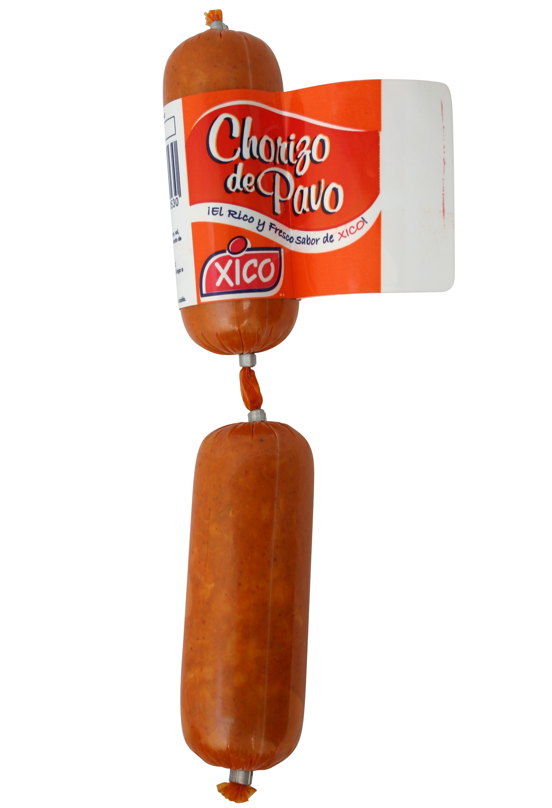 Salchicha económica de pavo elaborada con carne de pavo finamente picada con pimienta y nuez moscada. Ahumada con leña de mezquite de la región, embutida en tripa plástica no comestible y cocida al vapor. Se distingue por su frescura y sabor.