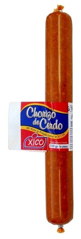 Producto crudo tradicional en nuestro país y es la mezcla de carne y grasa de cerdo picada, caracterizada por su color rojo y naranja que le proporcionan la combinación de especias y chiles que se le añaden, entre los cuales está el pimentón español como elemento insustituible, todo es protegido con la acidez del vinagre que se le agrega. Es embutido en tripa plástica artificial no comestible.